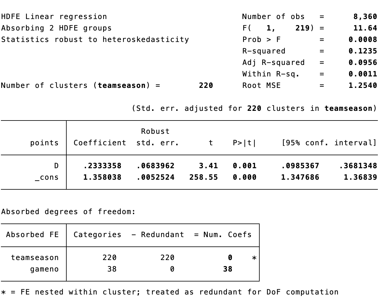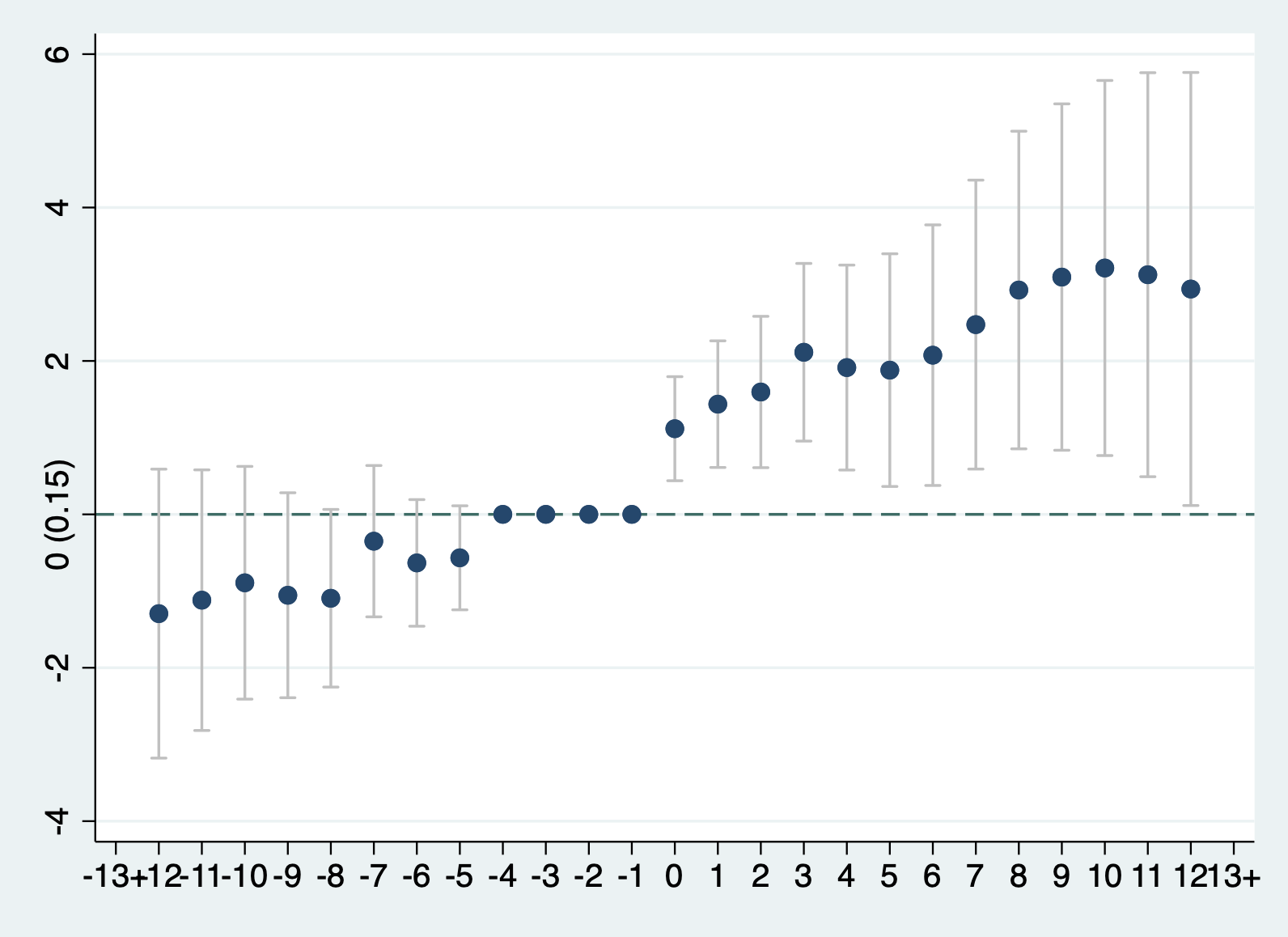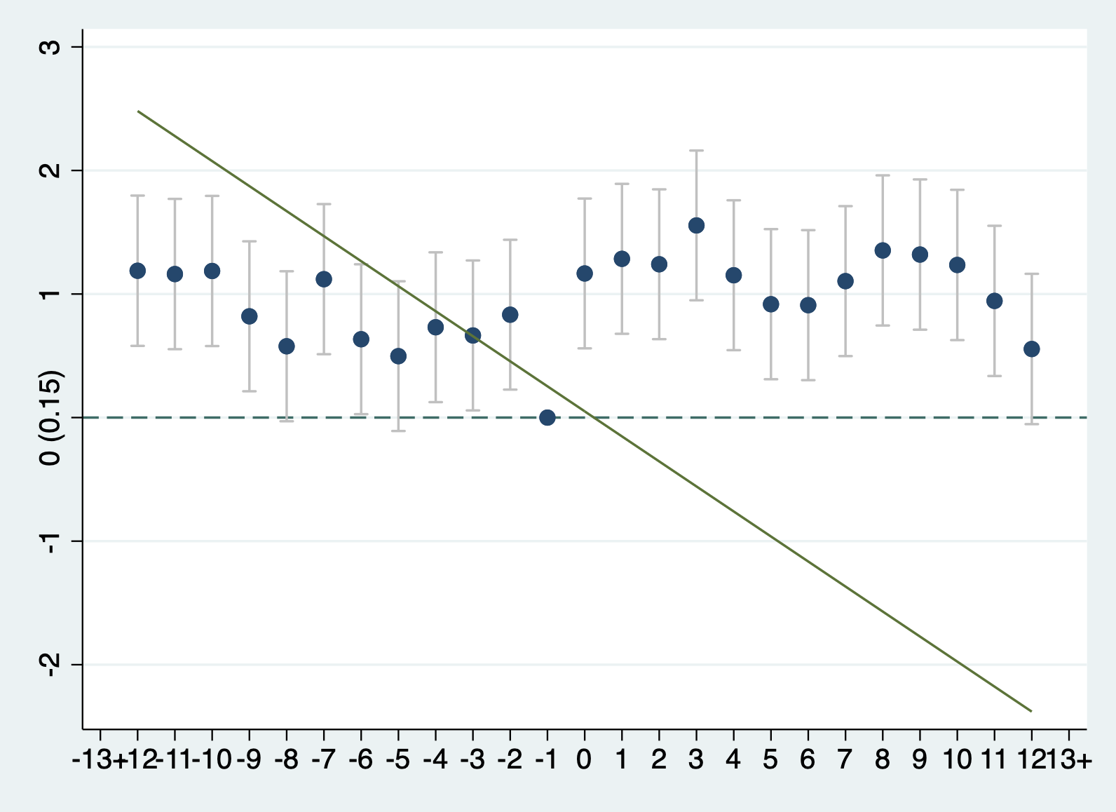 xtevent points, panelvar(teamseason) timevar(gameno) policyvar(D) window(12) trend(-4)
